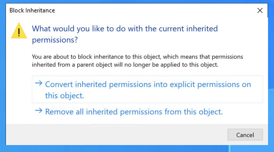 5.- In the next window, click in “Convert inherited permissions into explicit permissions” and save. If you don't you may loose access to the share.